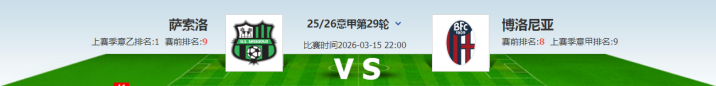 本场比赛是意甲低29轮的一场较量,由主场的萨索洛迎战博洛尼亚。萨索洛现在获取了11胜5平12负的收成,积38分排在联赛第9位;博洛尼亚现在获取了11胜6平11负的收成,积39分排在联赛第8位。